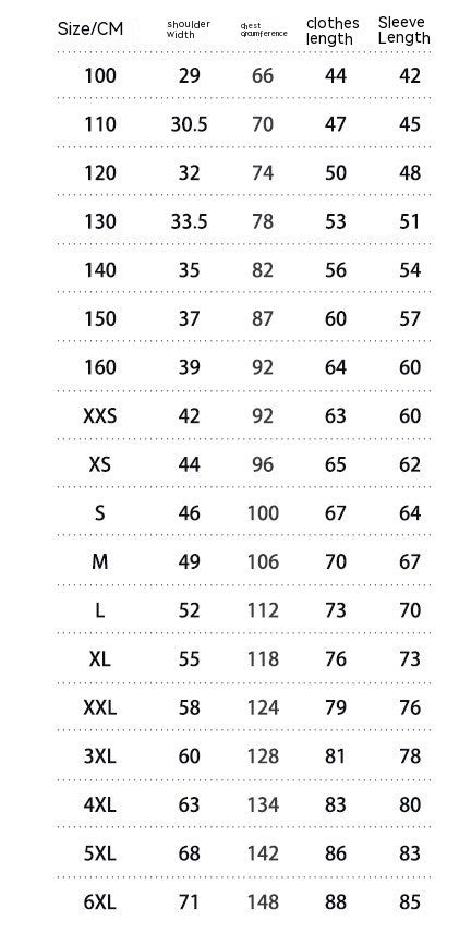 Size: XXS,XS,S,M,L,XL,2XL,3XL,4XL,5XL,6XL