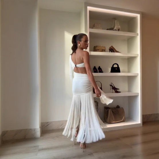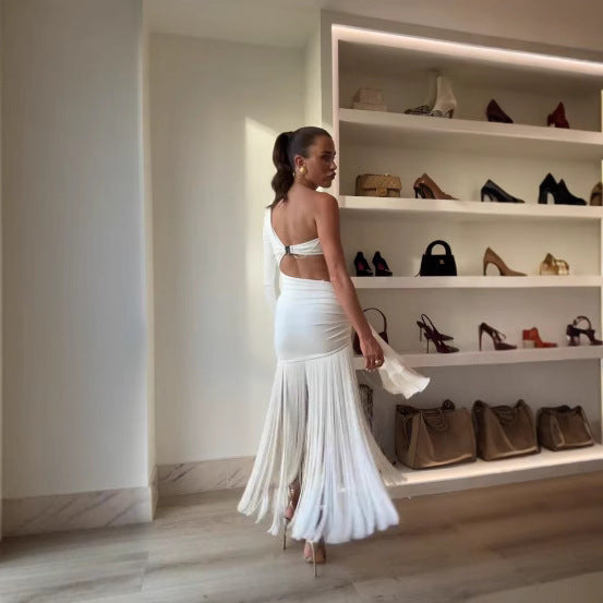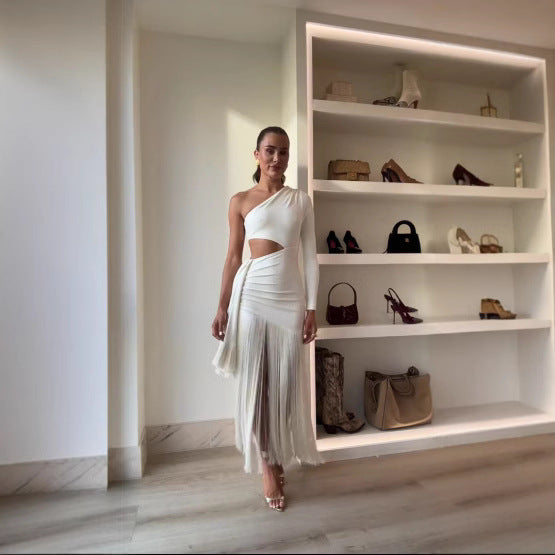 One Shoulder Midriff Outfit Women's Short Casual Fashion Flow Comb Dress