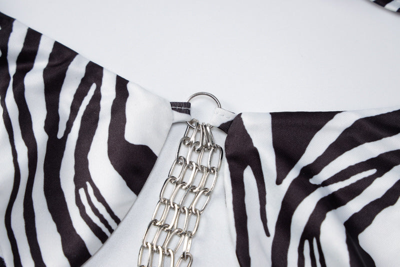 Printed Tether Chain Bikini Fashion Swimsuit Set