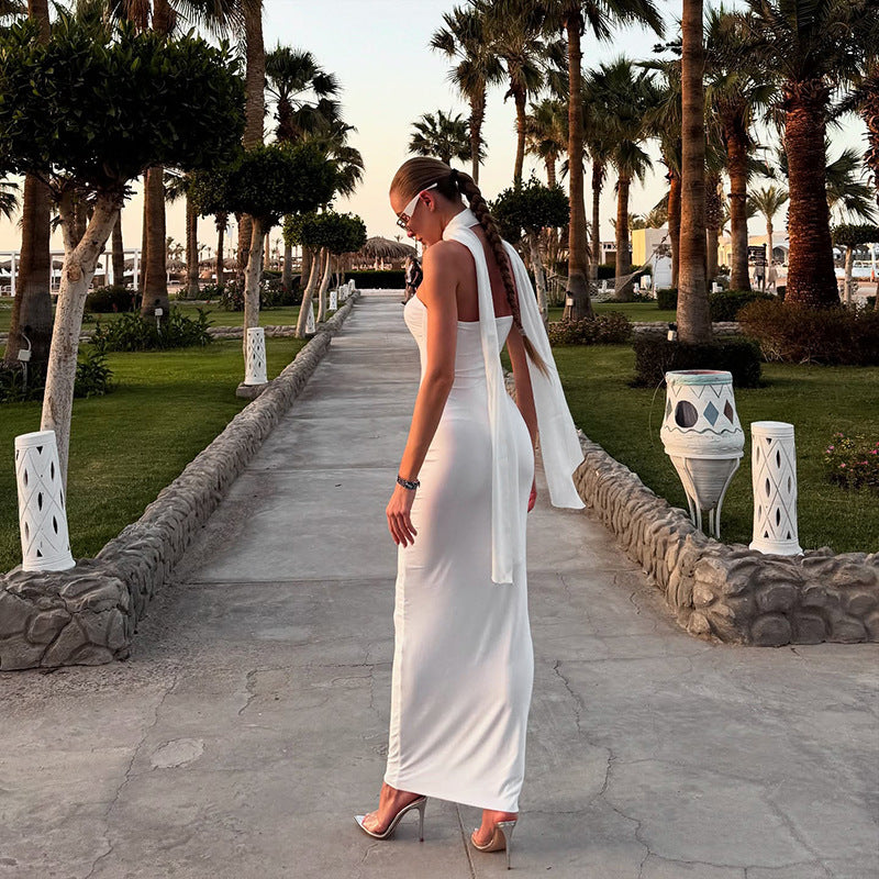 Solid Color Ribbon Tube Top Package Hip Sexy Dress