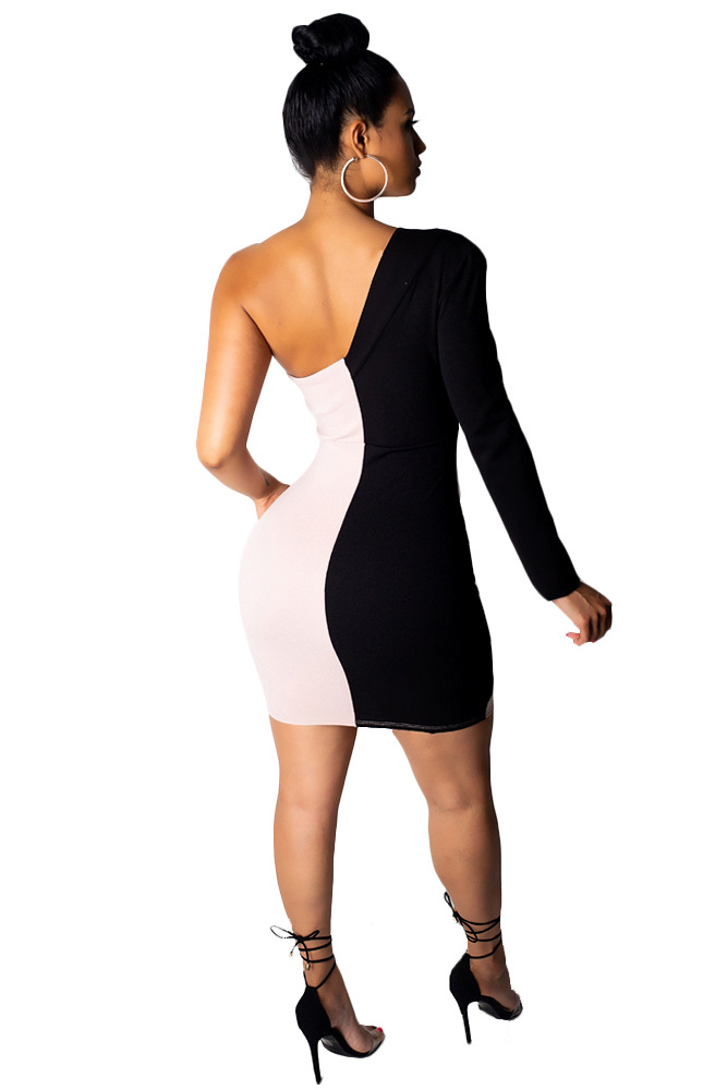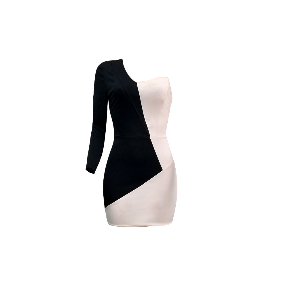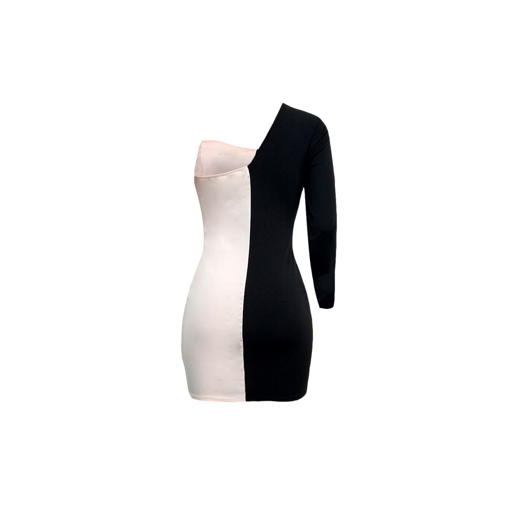 Stitching Contrast Color Asymmetric Long Sleeve Slim Fit Sexy Dress