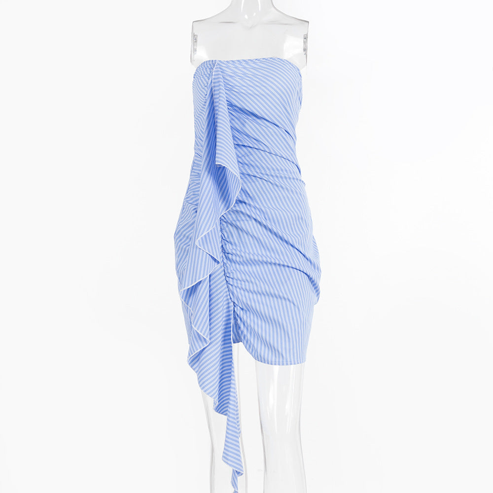 Striped Ruffled Ribbon Ruffle Hip Short Skirt