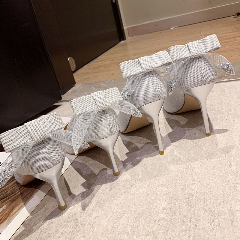 Women's Sequin Stiletto High Heels With Pointed Bow